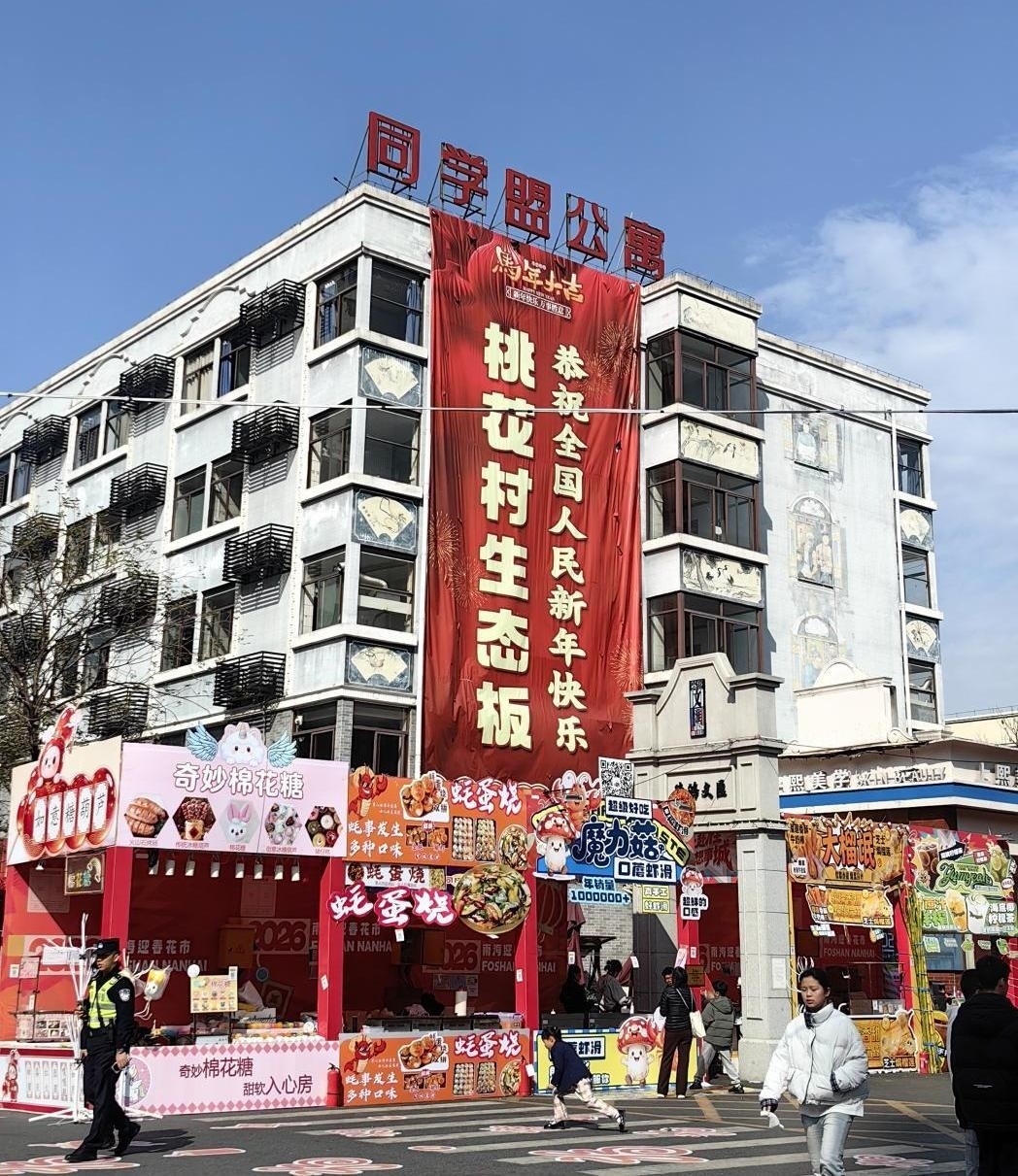 2月7日至2月16日,2026南海迎春花市于桂城德鸿文汇创意园盛大启幕,联动南舜怡海港、K12PARK素质成长中心两大场地,以“传统年味+潮流元宇宙+非遗狂欢+乐高梦幻”的多元形态,打造一场规模空前的年度文化大秀。桃花村生态板也借此盛事重磅发声,以主题广告的形式入驻花市,将品牌匠心融入新春烟火,与南海人文底蕴双向共鸣。